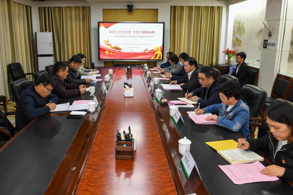 11月9日,自治区林业局党组党史学习教育第二巡回指导组组长陈青来一行莅临pg娱乐,开展第三轮指导工作。学校党委书记李振秋,相关部门、二级学院党总支书记参加座谈会。
