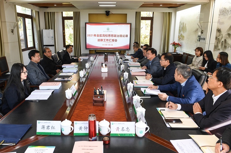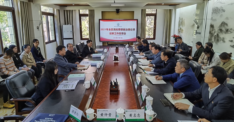 11月10日上午,由广西科技大学党委书记赵君教授担任组长的自治区教育厅巡察组一行4人到pg娱乐检查思想政治理论课建设情况。pg娱乐党委书记李振秋、校长冯昌信、党委副书记王汉奇、副校长潘梅勇及学校职能部门、马克思主义学院相关负责人参加了本次巡察工作汇报会和反馈会。