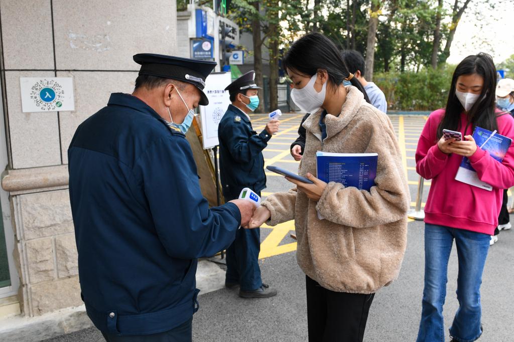 学生自觉接受体温检测