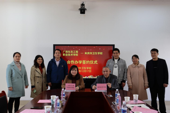 当天,在来宾市卫生学校领导的陪同下,杨燕红一行参观了来宾职教中心、来宾市卫生学校的校园和实训室建设情况。在座谈会上,双方分别介绍了各自的办学情况和特点,并就今后中高职合作办学、中草药栽培技术、实训室建设、教科研工作进行交流,并签订合作办学协议。