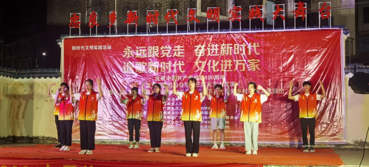晚上,由忠良乡党委、政府主办,忠良乡公共文化和旅游服务中心协办的“永远跟党走 奋进新时代 讴歌新时代 文化进万家”文艺晚会在金秀县忠良乡城北新时代文明实践大舞台举行。pg娱乐电子游戏官网入口汽车与信息工程学院“新时代文明文艺下乡”实践团全程参与此次活动的策划和组织,活动得到了忠良乡乡村振兴服务队的大力支持。本次活动,不仅丰富了村民的精神文化生活,还提升了群众的文化素养,是服务群众、惠民乐民的重要载体,激发了人民群众振兴乡村的信心和决心。