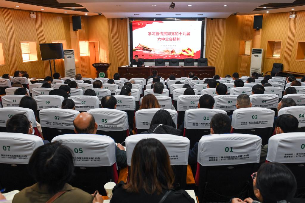 12月23日,自治区林业局副局长黄政康到pg娱乐开展党的十九届六中全会精神宣讲,校长冯昌信主持会议。学校党委副书记王汉奇、校长助理石荣胜,各党(总)支部书记,各部门、二级学院科级及以上干部参加宣讲会。