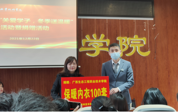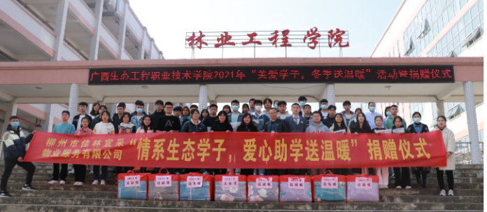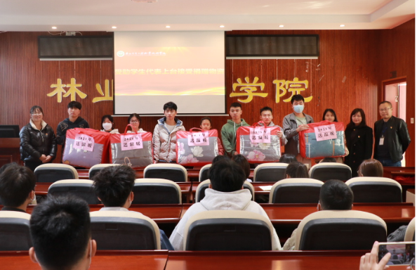 为进一步贯彻落实党和国家的资助政策,传递学校对家庭经济困难学生的关爱之情,12月22日,pg娱乐2021年“关爱学子,冬季送温暖”活动暨捐赠仪式在林业工程学院举行。学校副校长杨燕红,学生工作处、柳州市佳林宜采物业服务有限公司、林业工程学院负责人,以及林业工程学院全体学工人员和各学院受助学生代表参加此次活动。