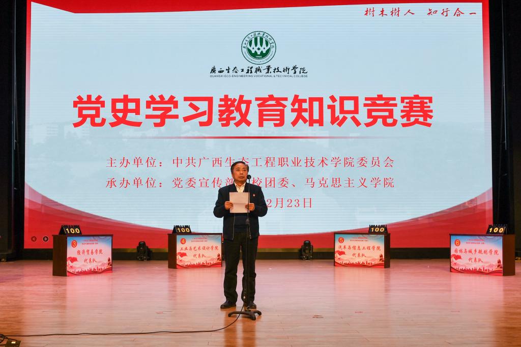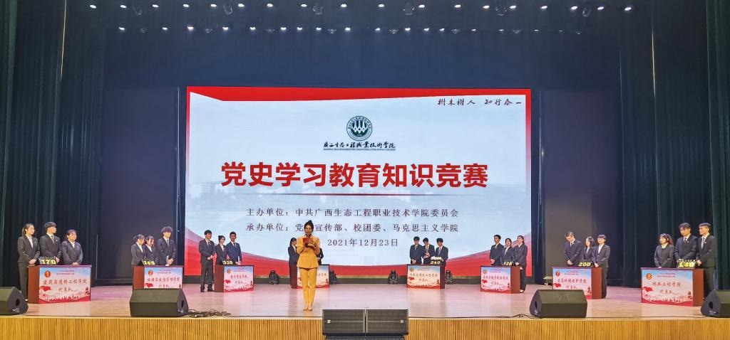 为了深入推进党史学习教育,引导广大师生真正做到“学史明理、学史增信、学史崇德、学史力行”。12月23日,由学校党委主办,党委宣传部、校团委、马克思主义学院承办的pg娱乐电子游戏官网入口党史学习教育知识竞赛在文化艺术中心隆重举行,学校党委副书记王汉奇,党委宣传部、校团委、马克思主义学院、各二级学院相关负责人,教师代表,学生代表参加活动,来自各二级学院8支队伍参加本次比赛。