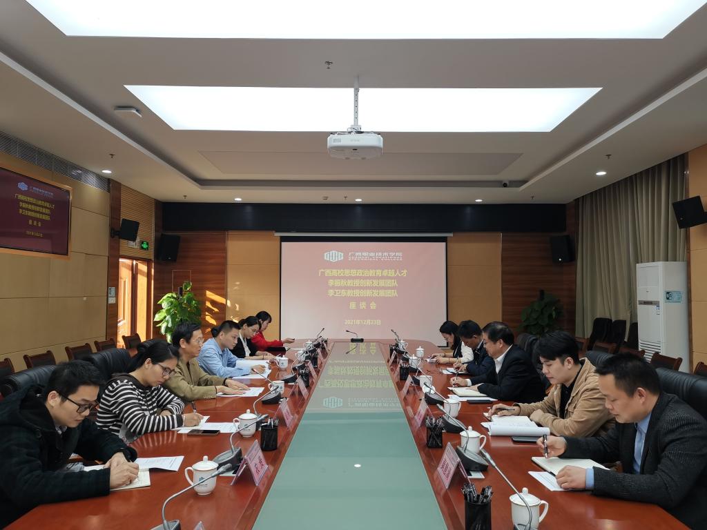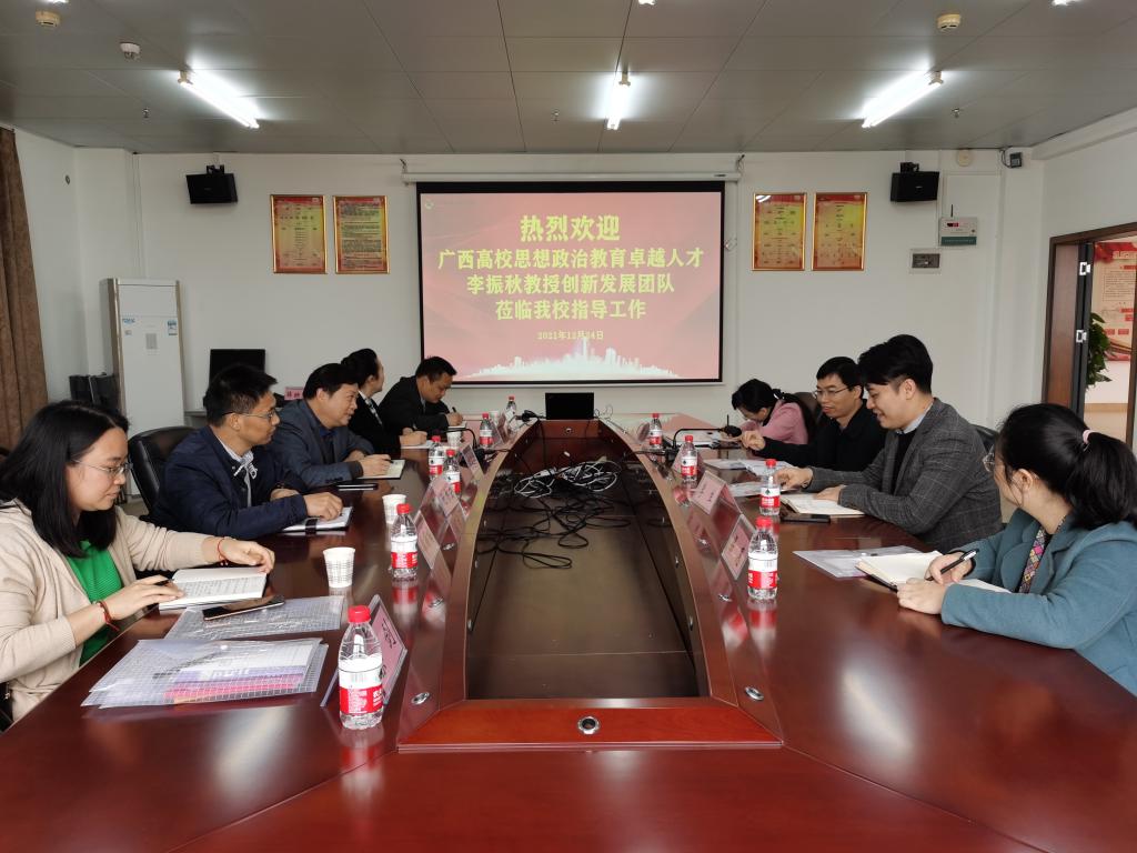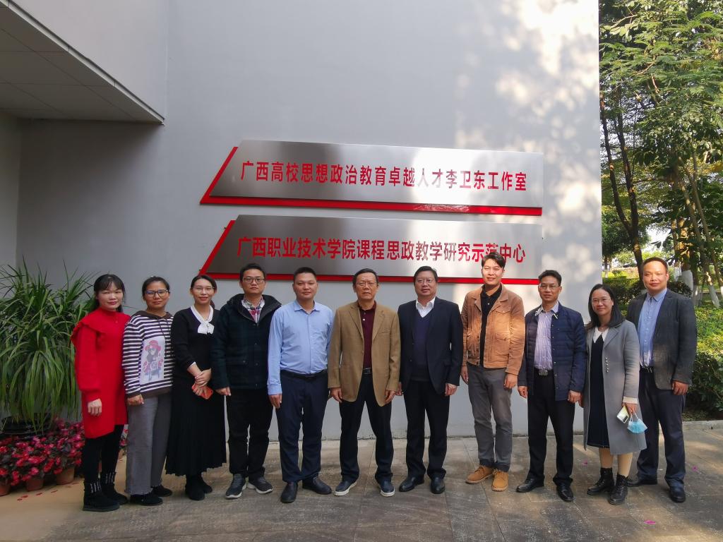 为学习借鉴思政课实践教学的先进经验,提升团队成员思想政治教育能力,2021年12月23日—24日,学校党委书记、广西高校思想政治教育卓越人才李振秋教授带领创新发展团队成员到广西职业技术学院和广西建设职业技术学院开展思政课创新发展团队建设和虚拟仿真思政课实践教学调研交流。