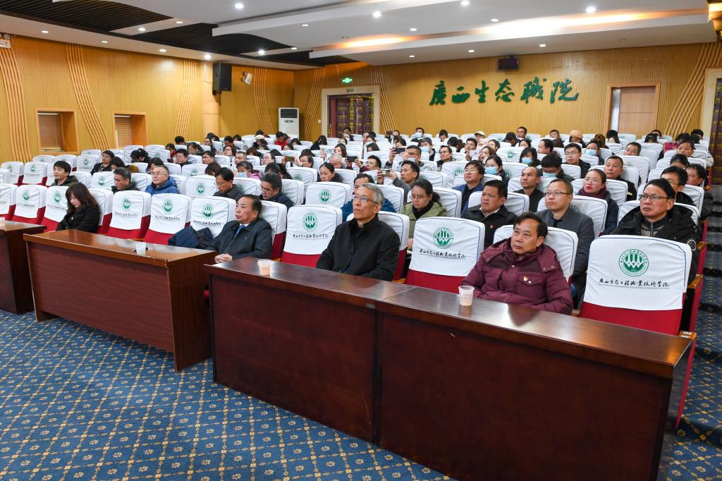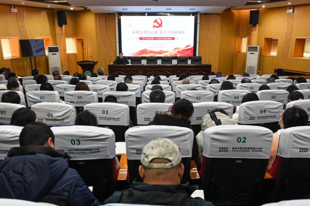 李振秋认真传达了自治区党委书记刘宁在自治区第十二次党代会上作的报告,围绕深刻认识自治区第十二次党代会的历史意义、学习宣传贯彻党代会精神的重要性、党代会报告的时代价值和最重要的历史成果等方面,对自治区第十二次党代会进行了宣讲和解读,科学阐述了为什么建设、建设什么样的和怎么建设新时代中国特色社会主义壮美广西的目标、内涵、要义,并对建设新时代中国特色社会主义壮美广西“1+1+4+3+N”目标任务体系进行了详细阐释。