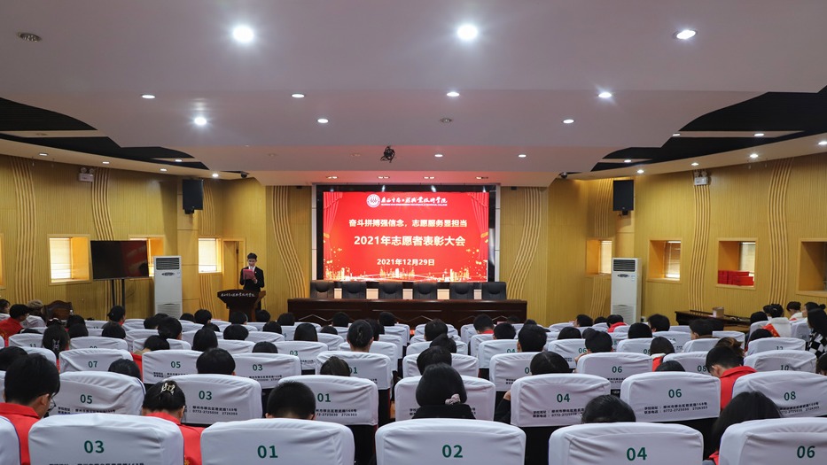 12月29日下午,pg娱乐2021年志愿者表彰大会在第二报告厅隆重举行。学校副校长杨燕红,党委宣传部、党委学工部、校团委部门负责人、校团委全体成员、各二级学院团委书记、优秀志愿者及志愿者团队代表出席大会。