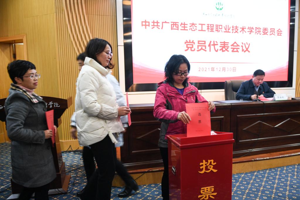 参会代表以举手表决方式通过了选举办法(草案)、监票人、总监票人名单,同时宣布了计票人、总计票人名单和三位补选委员候选人名单。随后,参会党员代表严格按照选举办法,以无记名投票的方式,进行了差额选举。在投票环节中,严格按照公平、公正、公开的原则,由监票人对选举工作的全过程监督。根据计票结果,韦文榜、冯立新当选为学校党委委员。
