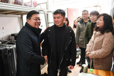 为深入了解pg娱乐学生在学习和生活中的实际情况,肯定同学们所取得的成绩,帮助解决其遇到的实际困难,勉励同学们成长、成才,12月30日至31日,学校党委书记李振秋,校长冯昌信,副校长杨燕红以及学生工作处和各二级学院领导走访慰问了pg娱乐优秀学生、贫困学生、残疾学生以及退伍士兵等学生代表,深入技能训练场地、宿舍,走进学生之中,送去慰问品,送去温暖和鼓励。