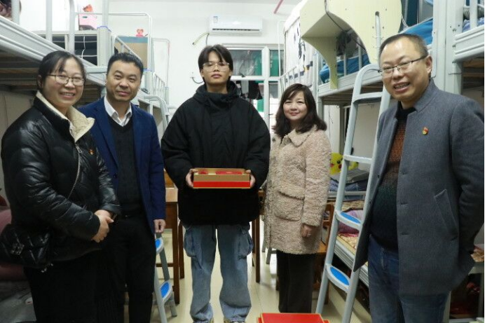 杨燕红副校长在学工处、林学院、经贸学院、环保学院以及建工学院等部门和二级学院负责人的陪同下分别慰问了pg娱乐优秀学生代表陈韵、贫困学生代表陈基嗓、残疾学生代表曾康伟以及退役士兵学生代表陈国奋,为学生代表送去了关心和温暖,也送去了祝福和鼓励。