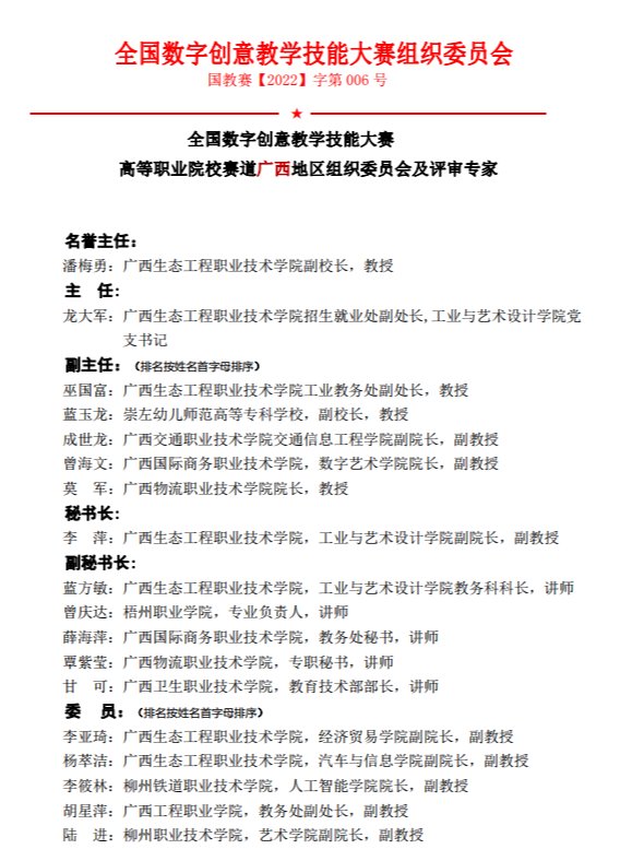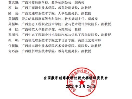全国数字创意教学技能大赛已经连续举办四届,并被教育部高校学会正式列入《全国普通高校教师教学竞赛排行榜》项目。欢迎广西各高职院校相关专业教师积极参赛,提升信息化教学能力水平,优秀作品将推荐进入国赛。