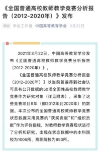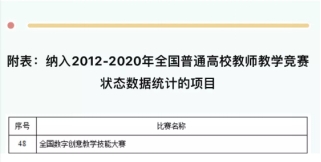 该赛事活动已获得中国高等教育学会关注,并成功入选2020年全国普通高校教师教学竞赛榜单。