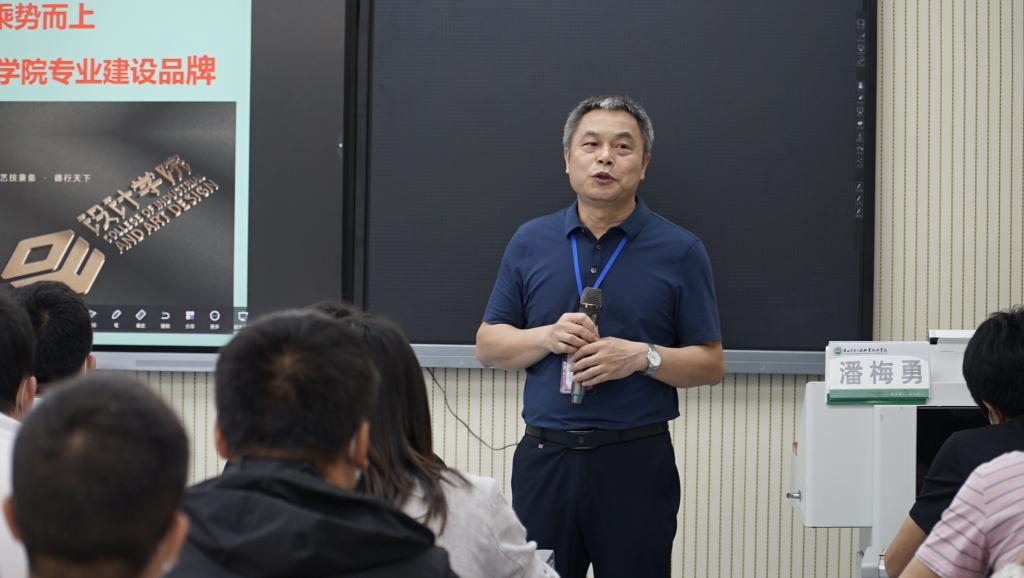 潘梅勇从如何扎实推进强有力的团队建设,如何提高职业素养、做个好老师,如何凝练和打造设计学院专业品牌等三个方面进行专题指导。他在会上强调:要学会站在巨人的肩膀上,充分挖掘和打造学院专业品牌,坚持内涵发展、特色发展、创新发展、共建发展的思路,致力全面提高人才培养质量、科研水平、社会服务和文化传承创新能力。