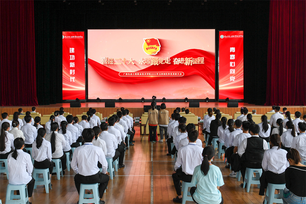 为迎接党的二十大胜利召开、庆祝建团100周年,引导广大团员青年牢记习近平总书记对青年的殷切嘱托,表彰优秀,激励广大青年担当作为。5月5日下午,pg娱乐在文化艺术中心举行“喜迎二十大、永远跟党走、奋进新征程”2022年五四创先争优表彰大会。学校党委书记李振秋、校长冯昌信、党委副书记王汉奇、副校长杨燕红、副校长潘梅勇、校长助理石荣胜,党政办公室、党委组织部、党委宣传部、党委学生工作部、教务处、团委等部门负责人,二级学院分管学生工作负责人和团委书记、团员代表参加了表彰活动。
