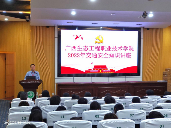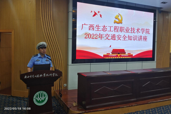 为进一步维护pg娱乐交通安全秩序,提高pg娱乐师生交通安全意识。5月18日,学校邀请柳州市交警支队北部生态新区大队黄伟球警官到校举行交通安全知识讲座,讲座地点设在学校第二报告厅,各学院辅导员及学生代表共计200多人参加。