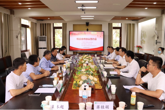 2022年5月19日,柳州市惠农化工有限公司、柳州市橘之宝保健食品科技有限公司的领导及团队一行到访pg娱乐,出席校企合作协议签订暨授牌仪式。pg娱乐校长冯昌信出席签约仪式并讲话,林业工程学院、旅游与交通管理学院负责人和相关专业教师出席会议,会议由林业工程学院院长黎良财主持。