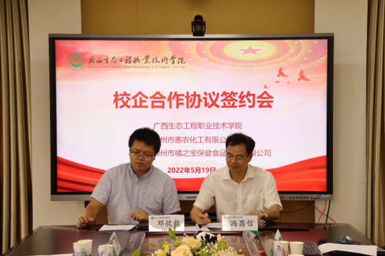 冯昌信校长、柳州市橘之宝保健食品科技有限公司邓欣毅总经理代表双方签约