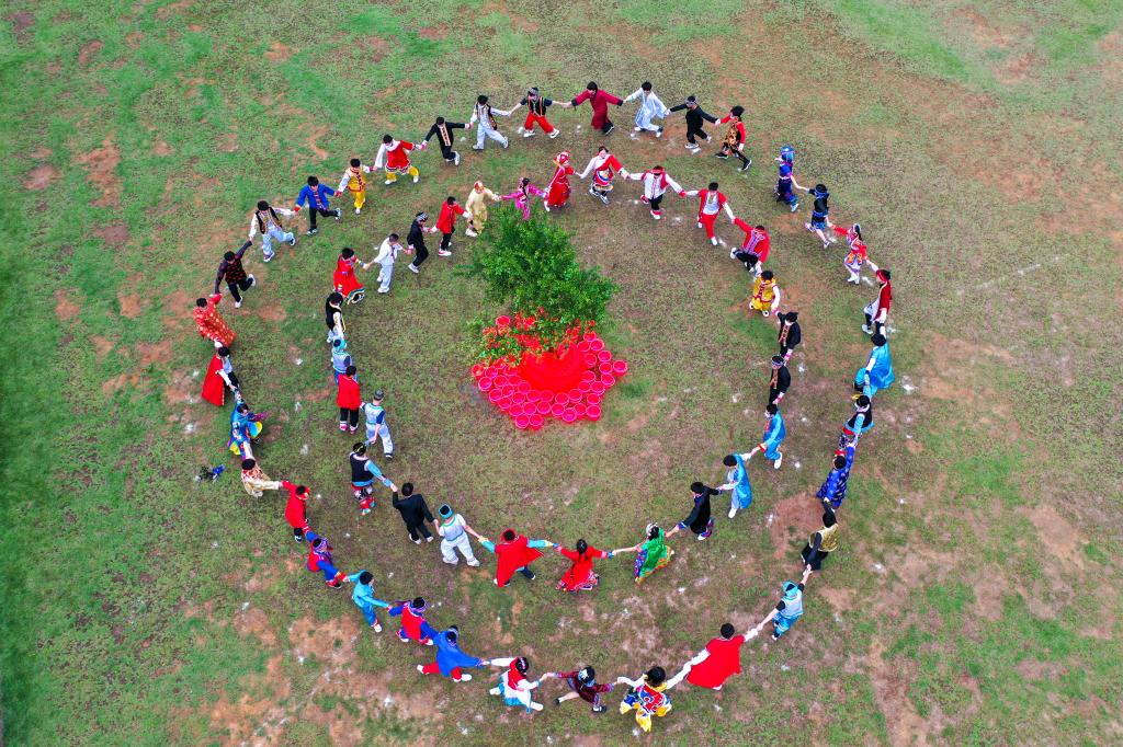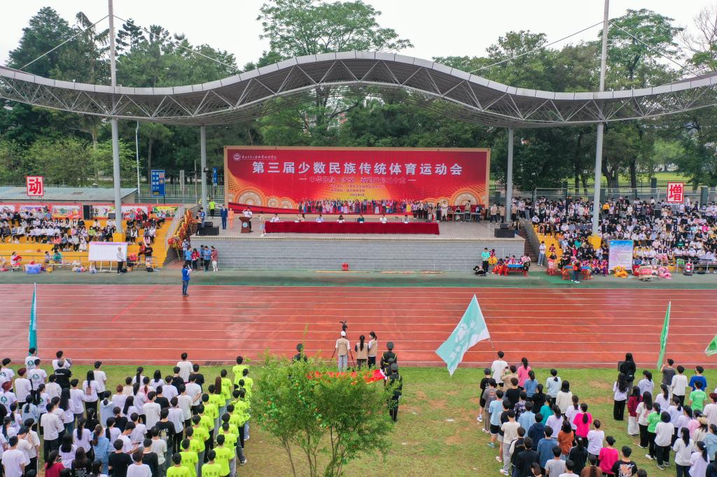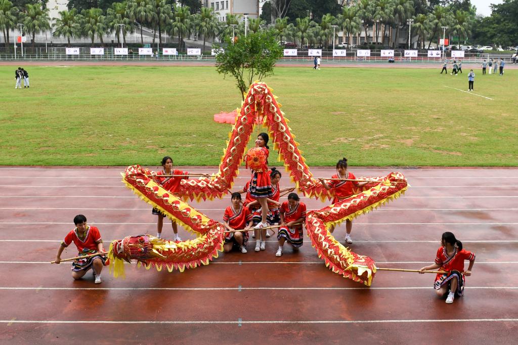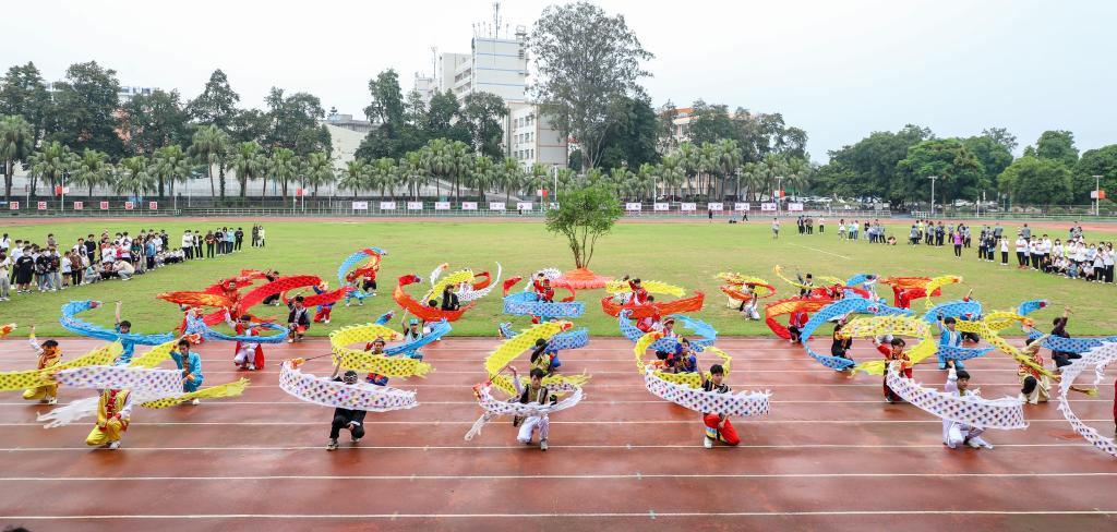 此次运动会在女子舞龙、醒狮竹竿舞、中国龙舞等极具民族传统体育特色的文艺节目中拉开帷幕。朝气蓬勃的表演,气宇轩昂的锣鼓声响,心潮澎湃的国歌,把会场气氛引向高潮,展现了中华民族一家亲的“思政大课”,号召师生要像石榴籽一样紧紧抱在一起,把民族团结的种子厚植心中,听党话、感党恩、跟党走。