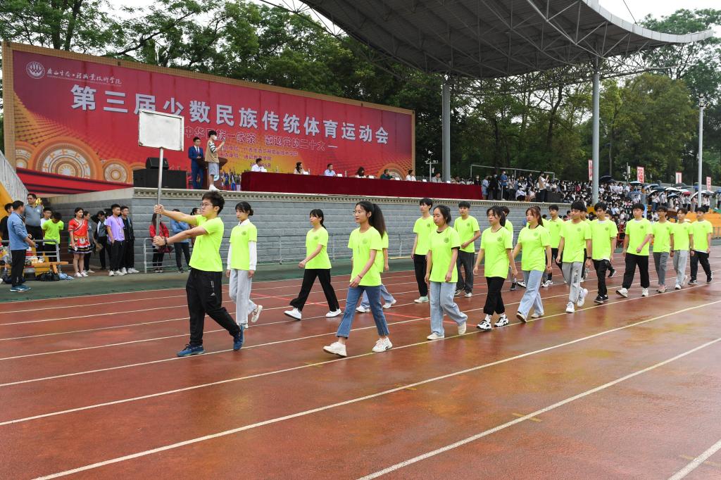 为弘扬少数民族传统文化,推动民族传统体育的持续健康发展,5月21日上午,pg娱乐在学校田径场举行第三届少数民族传统体育运动会。学校副校长杨燕红、潘梅勇出席开幕式,运动会开幕式由通识教育学院院长黄小民主持,副校长潘梅勇致开幕词。