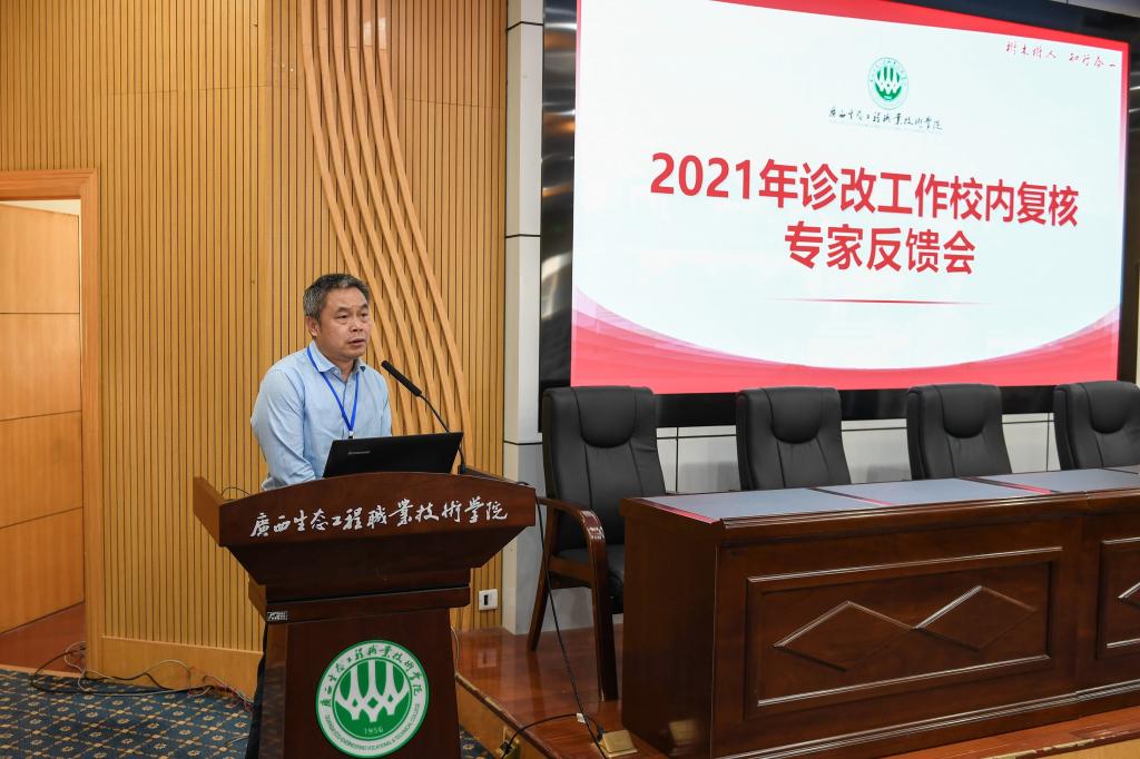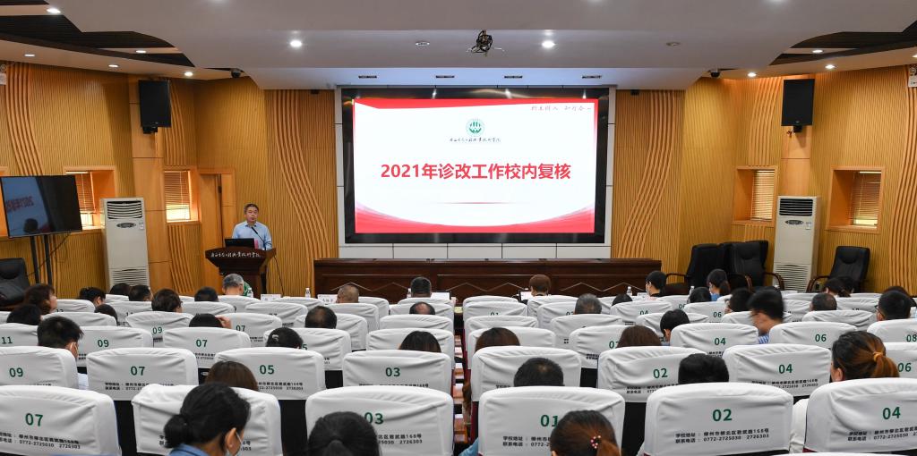 为推进学校诊改工作常态化运行,2022年5月27日,学校在第二报告厅开展2021年诊改工作校内复核,学校副校长杨毅、杨燕红、潘梅勇出席会议,广西工业职业技术学院质管办主任王自豪等一行5人担任复核专家,学校科级以上干部、专业负责人、课程负责人及师生代表参加了会议,会议由专家组组长王自豪主持。