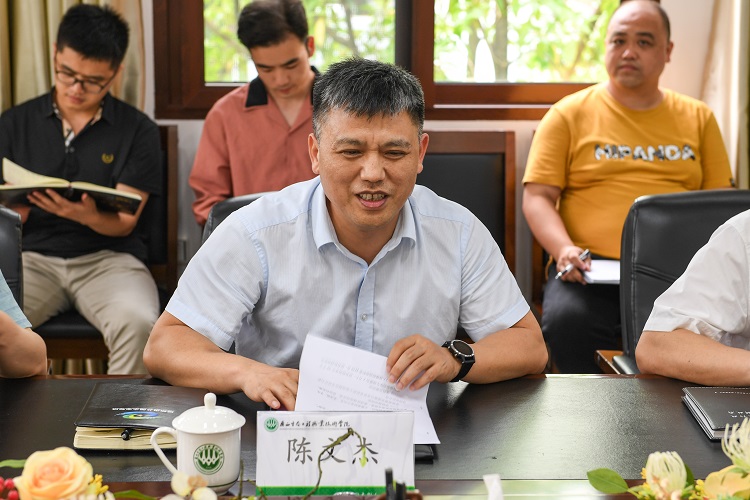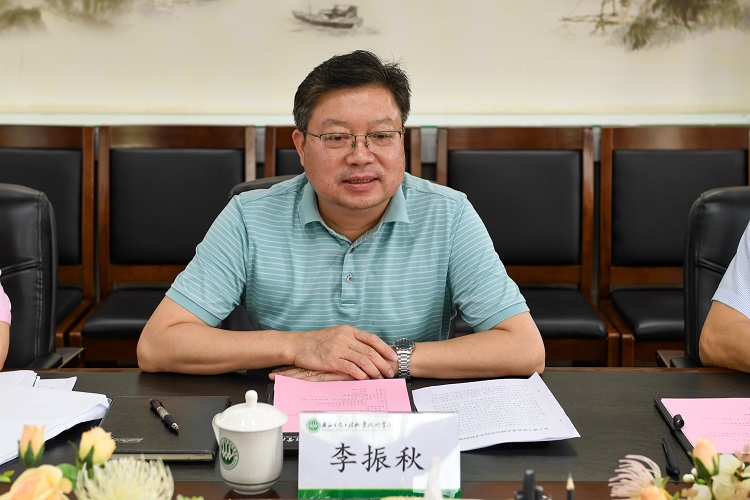6月9日下午,学校与柳州市北部生态新区管委会交流座谈会在东校区第一办公楼第一会议室举行。柳州市北部生态新区管委会主任陈文杰、常务副主任黄云广、北城集团总经理李海平与学校党委书记李振秋、校长冯昌信、校长助理石荣胜等出席了座谈会。座谈会由李振秋主持。
