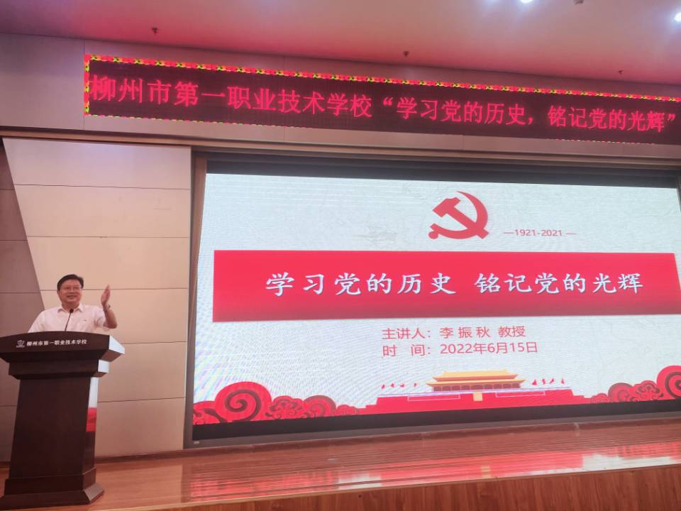 6月15日下午,校党委书记李振秋在一职校大礼堂以《学习党的历史,铭记党的光辉》为题,通过线上线下结合的方式,给一职校高职部800余名师生,上了一堂丰富多彩的党史教育课。