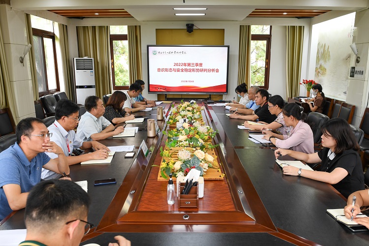 7月6日下午,学校2022年第三季度意识形态与安全稳定形势研判分析会在东校区第一会议室召开。学校党委副书记王汉奇,党委委员、副校长杨燕红,各相关职能部门、二级学院主要负责人参加会议。会议由学校党委委员、宣传部部长冯立新主持。
