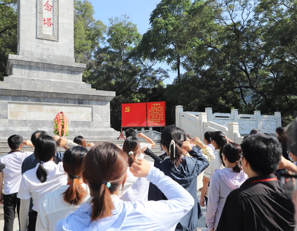 在东兰革命烈士墓敬献花篮、重温入党誓词