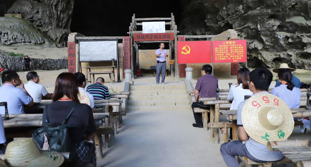 为使党史学习教育更加生动形象,中共广西区委党校还组织学员到中国共产党广西历史展览馆,韦拔群、李明瑞纪念馆,东兰县列宁岩、韦拔群故居、革命烈士墓等地开展体验式现场教学。学员们唱红歌、诵红诗、瞻仰红色文物、聆听红色故事,深深感受到革命先烈波澜壮阔的革命生涯,深切体会到今天美好生活来之不易。大家在东兰革命烈士墓前敬献花篮、默哀,表达了对革命先烈的无限缅怀之情,并用铿锵有力的声音再次面对鲜红的党旗,重温入党誓词,铭记入党初心。