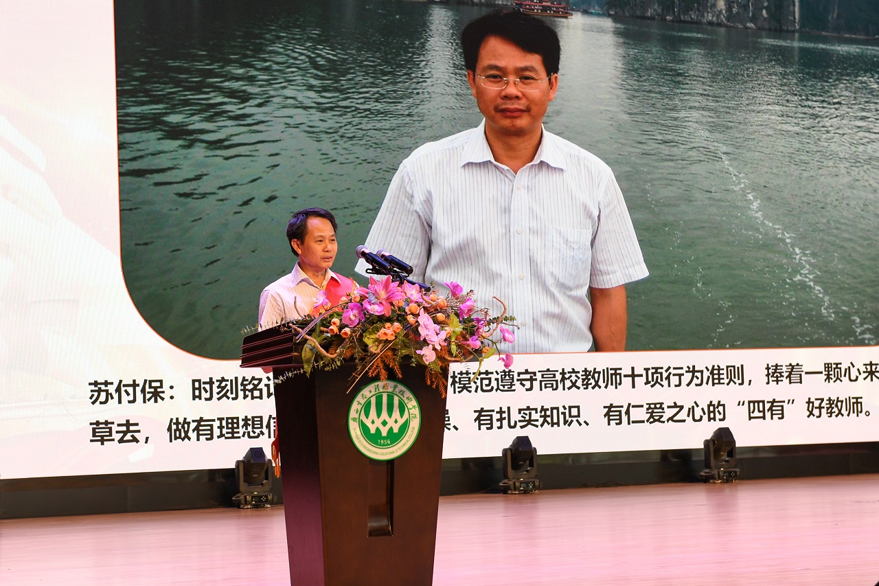 优秀教师代表苏付保、卜乔生、李蕾鲜分别进行了热情洋溢的发言,他们分享了自己在三尺讲台上以及教育工作者岗位的成长历程与收获,并对未来许下了庄严承诺:牢记习近平总书记的殷切嘱托,争做新时代“四有”好老师,为加快建成特色鲜明高水平职业院校做出新的更大贡献,以优异成绩迎接党的二十大胜利召开!