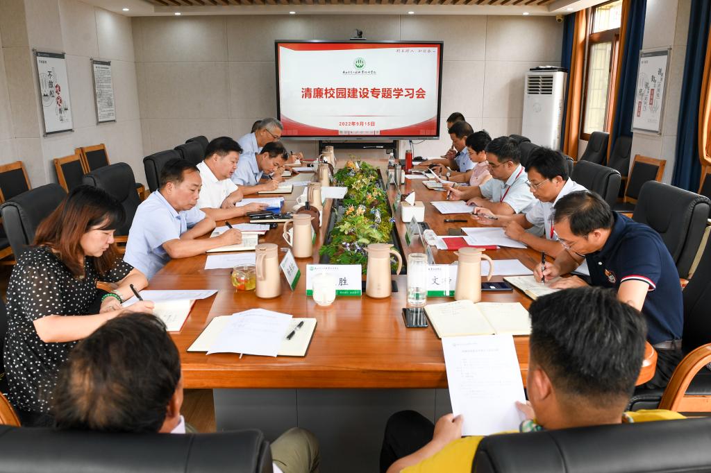 2022年9月15日,学校党委书记李振秋在第四会议室主持召开清廉校园建设专题会,校领导班子成员及相关职能部门、二级学院负责人参加会议。