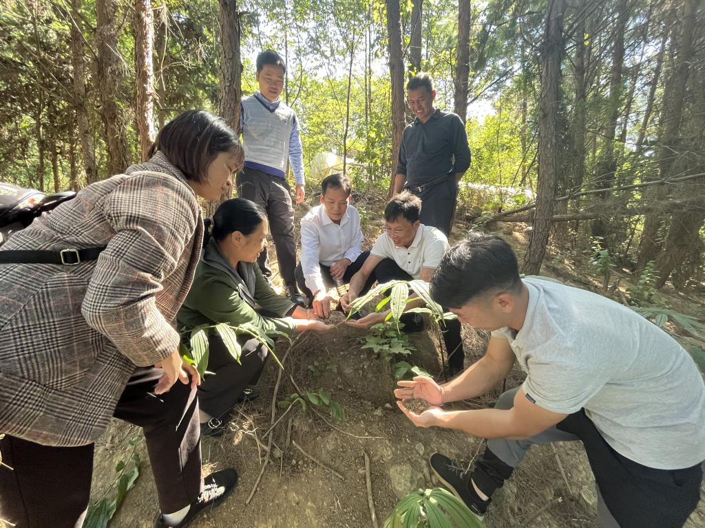 参观林下套种基地以及苗圃育种大棚,并给予技术指导
