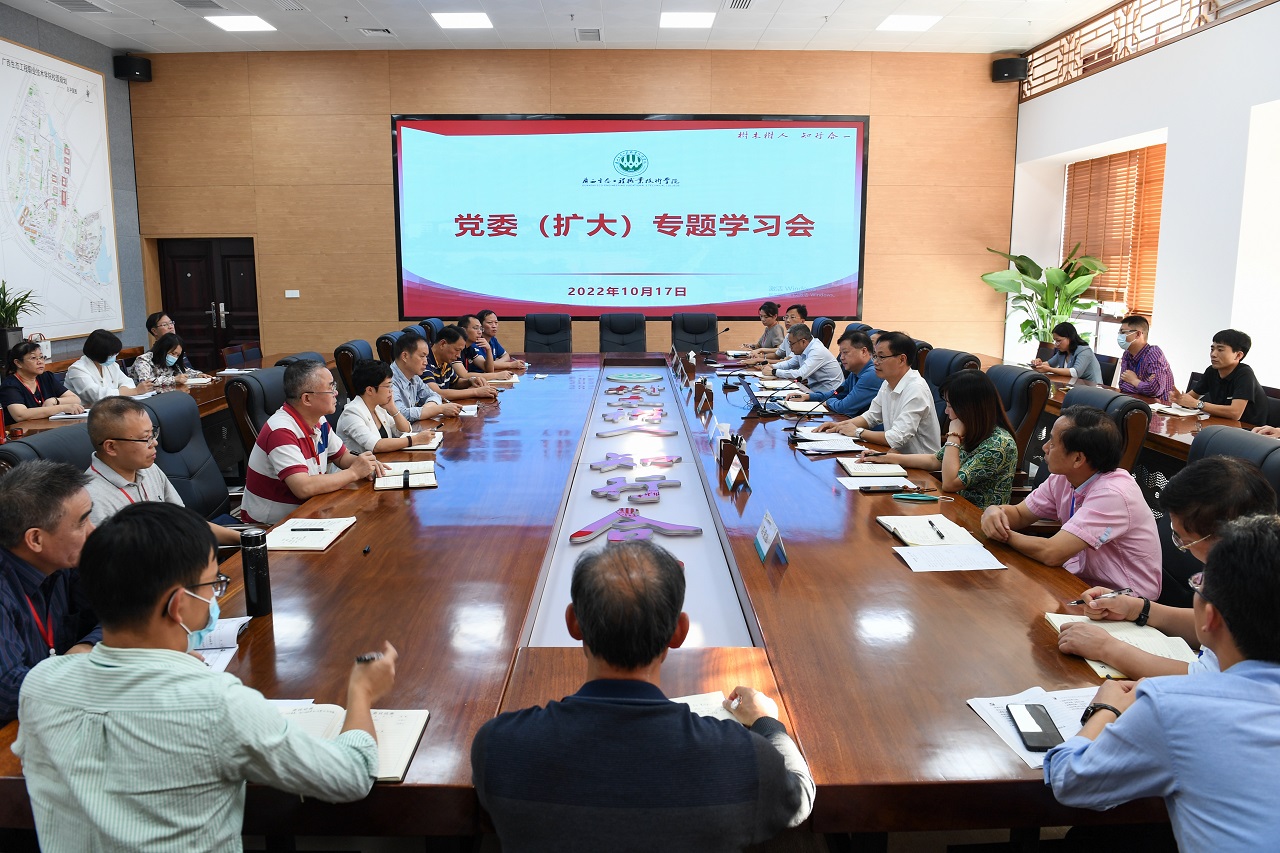 10月17日,学校举行党委(扩大)专题学习会,传达学习党的二十大精神。