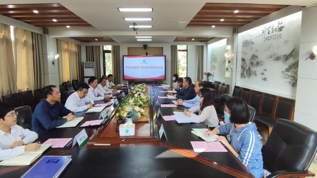 10月18日下午,学校党委召开第三轮巡察培训动员会。党委书记、巡察工作领导小组组长李振秋出席会议并作动员讲话,党委副书记、巡察工作领导小组副组长王汉奇主持会议,巡察工作领导小组其他成员、巡察办、第三巡察组全体成员参加会议。