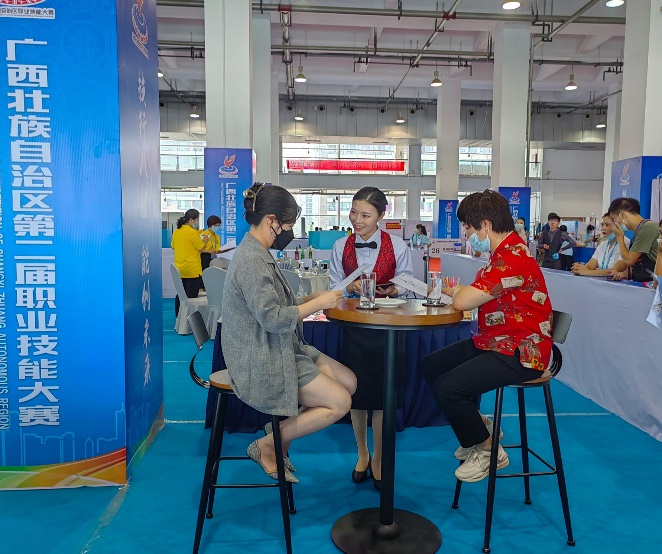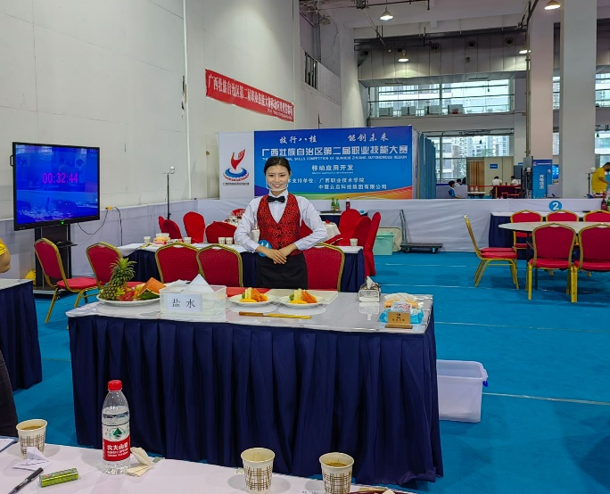 9月23日,2022年广西第二届职业技能大赛在广西玉林市举行,餐厅服务赛项共有45支队伍,分别来自各个地市职工代表队和各个院校代表队,经过两天紧张激烈地角逐,pg娱乐旅游与交通管理学院酒店管理与数字化运营专业2019级学生黎任秀荣获“餐厅服务”赛项铜牌。