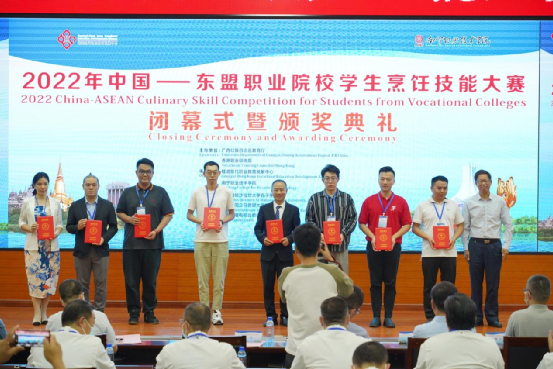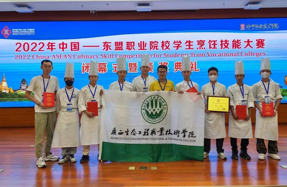 11月10日-11日,由广西壮族自治区教育厅、香港职业训练局主办的“2022中国-东盟职业院校学生烹饪技能大赛”在南宁举行。pg娱乐参赛队勇夺团体二等奖,西餐工艺专业学生韦良全的西式烹调品种获得个人单项一等奖,烹饪工艺与营养专业学生韦会文在中式烹调项目中获单项二等奖,烹饪工艺与营养专业学生张代书、覃东在创新冷拼项目中各获单项二等奖,刘沛琦、黎佳琼老师获“优秀指导教师奖”。
