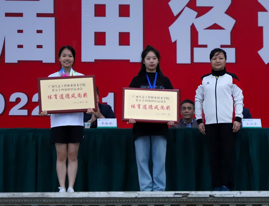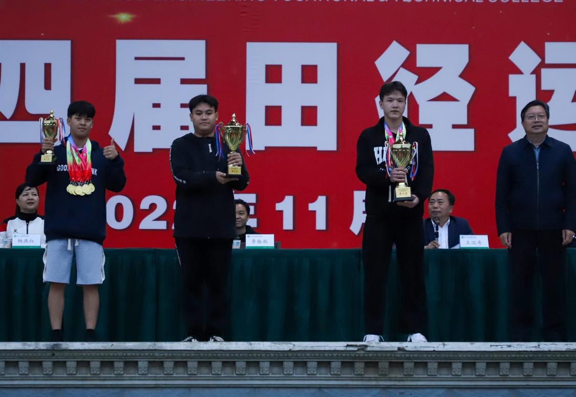 本次运动会总裁判长黄小民宣布竞赛成绩及获奖名单:女子团体总分第一名工业与艺术设计学院、第二名林业工程学院、第三名汽车与信息工程学院;男子团体总分第一名工业与艺术设计学院、第二名建筑与道桥工程学院、第三名汽车与信息工程学院;男女团体总分第一名工业与艺术设计学院、第二名汽车与信息工程学院、第三名林业工程学院。“体育道德风尚奖”评比组组长朱名明宣布“体育道德风尚奖”获奖名单:汽车与信息工程学院、建筑与道桥工程学院获体育道德风尚奖。