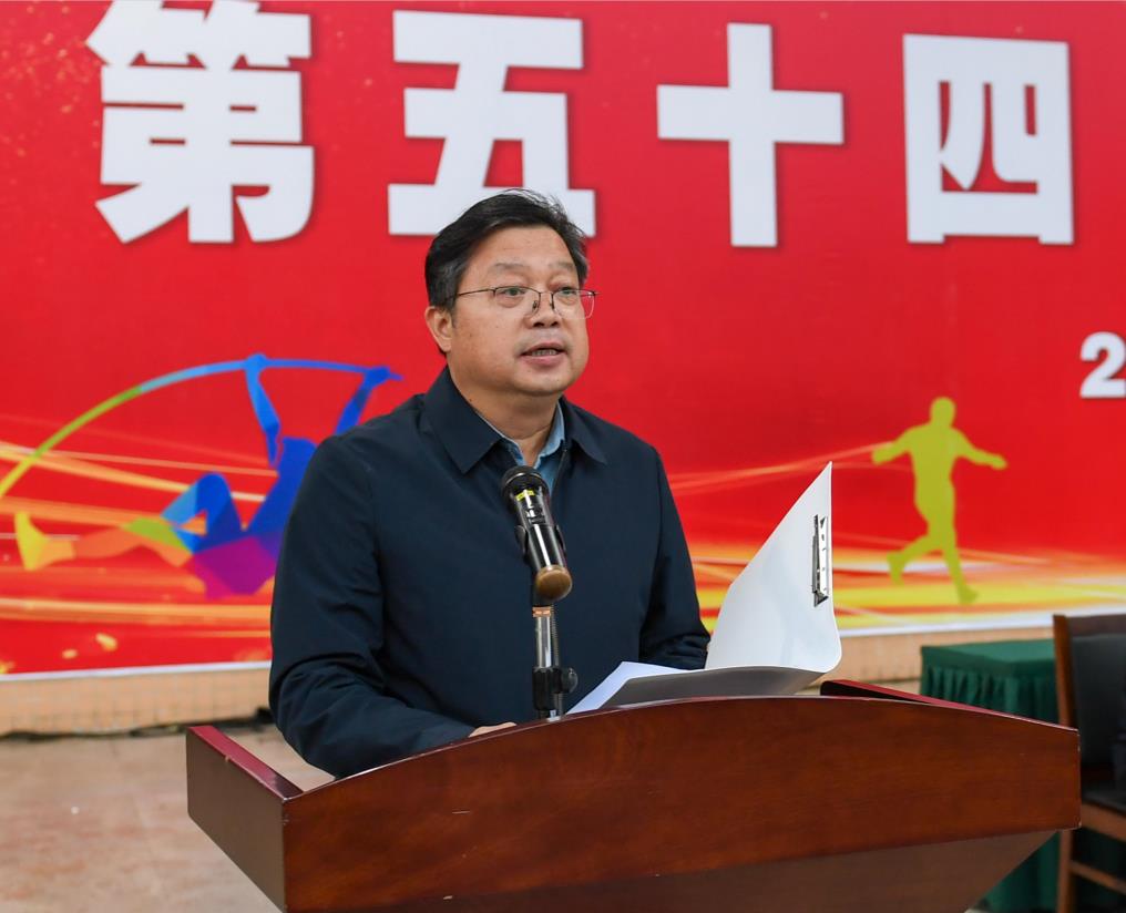 党委书记李振秋致闭幕词,他代表学校对在校运会上取得优异成绩的集体和个人表示热烈祝贺!对为校运会付出辛勤劳动的裁判员、教练员以及全体工作人员表示崇高的敬意和衷心的感谢!他指出,本届运动会即将圆满落下帷幕,它留给我们的不仅是奖杯、奖牌、奖状,更是一种自强不息、团结进取的奋斗精神,他勉励全体师生发扬学校“咬定青山不放松”精神,坚守“树木树人、知行合一”校训,以奋进姿态投入到接下来的学习、生活、工作中,孜孜以求、勇创佳绩,团结协作、携手共进,再接再厉、再创辉煌。