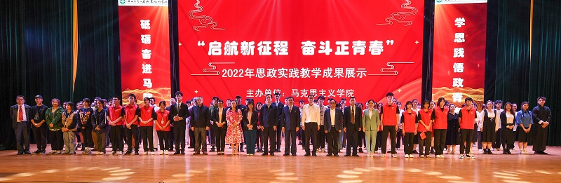 为庆祝党的二十大胜利召开,庆祝中国共产主义青年团成立100周年,建好建强新时代马克思主义学院,进一步加强思想政治教育教学的针对性、实效性,进一步提升思政教学的亲和力,11月21日晚,由马克思主义学院主办的“启航新征程 奋斗正青春”思政实践教学成果展示在学校文化艺术中心举行。pg娱乐党委书记李振秋、校长冯昌信、党委副书记王汉奇、副校长杨燕红以及各二级学院,各职能部门领导出席活动,自治区高职院校集群结对共建马克思主义学院相关院校领导教师代表,pg娱乐师生代表3000人共同观看了本次教学成果展示。