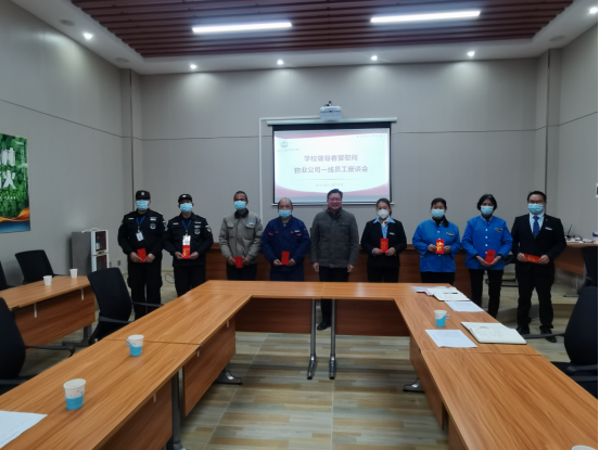 12月29日下午,学校党委书记李振秋前往物业公司办公点看望看望慰问物业公司一线员工,并与物业公司领导、驻校物业项目经理、业务主管及一线优秀员工代表座谈。