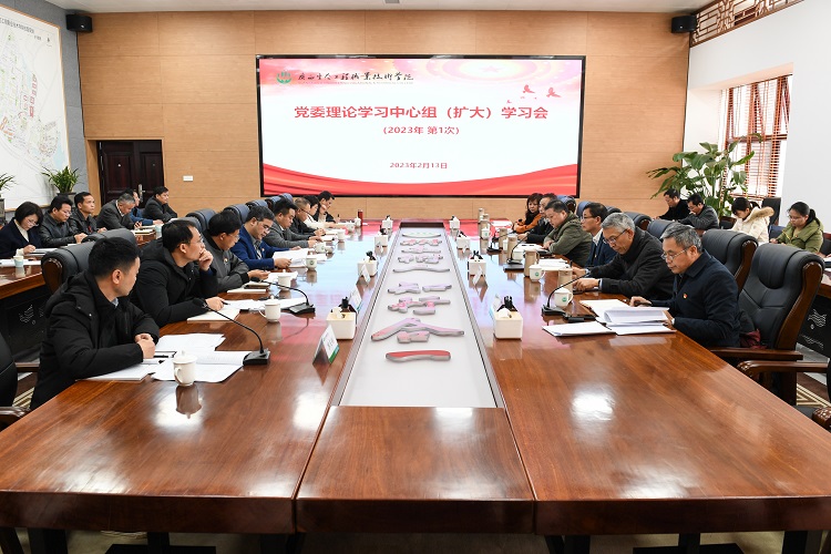 2月13日下午,学校党委在图书馆一楼综合会议室召开2023年度第一次党委理论学习中心组(扩大)学习会。学校党委书记李振秋,党委副书记、校长冯昌信,党委副书记王汉奇,党委委员、副校长杨毅、杨燕红、潘梅勇,校长助理石荣胜,党委委员周全连、韦文榜、冯立新及学校中层正职领导干部参加会议。会议由李振秋主持。