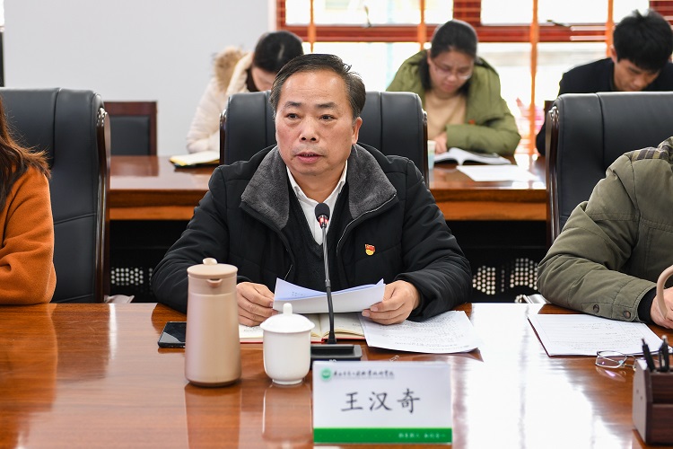 王汉奇领学《关于深入学习宣传贯彻党的二十大精神奋力开创新时代壮美广西建设新局面的决定》的精神。他从充分认识学习宣传贯彻党的二十大精神的重大意义、全面准确学习领会党的二十大精神的丰富内涵、推动学习宣传走深走细走实以及紧密联系实际抓好贯彻落实四个方面结合学校学习宣传贯彻党的二十大精神的系列方案和要求做出强调和要求。