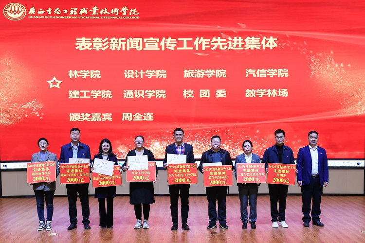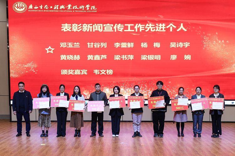 3月1日上午,学校在图书馆综合报告厅召开2022年度宣传思想工作总结表彰大会,学校党委副书记王汉奇,党委委员、副校长杨燕红,党委委员、党委组织部部长周全连,党委委员、党政办公室主任韦文榜,党委委员、党委宣传部部长冯立新出席会议。会议由党委宣传部副部长梁必玉主持。