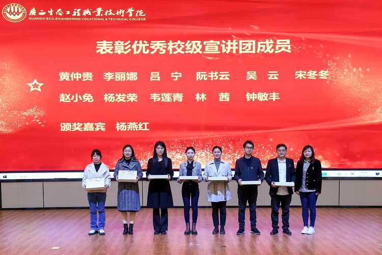 为全面深入学习宣传贯彻党的二十大精神,引导全校广大党员干部群众把思想和行动统一到党的二十大精神上来,学校成立以学校领导、党委委员、马克思主义学院的教师组建党的二十大精神宣讲团。期间,该宣讲团组织教师开展宣讲23场次,组织学生开展宣讲342场次,覆盖师生人数约15000人次,实现党的二十大精神学习宣传全覆盖。会上为优秀校级宣讲团成员颁发了纪念品。