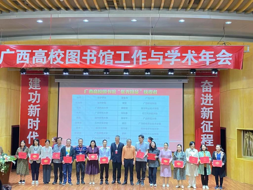 会上,对2022年广西高校图书馆工作突出的集体和个人进行了表彰。pg娱乐获“2022年广西高职高专院校信息素养大赛”优秀组织奖,赵丹僖老师获广西高教学会图书馆专业委员会第29次学术研讨会征文特等奖,黎意慧老师荣获广西高校“优秀馆员”荣誉称号。