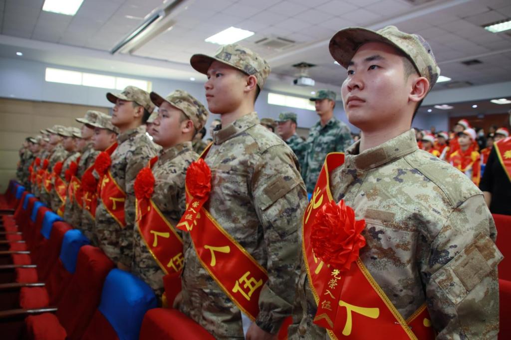 欢送会现场,新兵们身着戎装、胸戴大红花、肩披“光荣入伍”绶带,队列整齐、精神抖擞、满腔热血,对即将到来的全新的军旅生活充满了期待和向往。