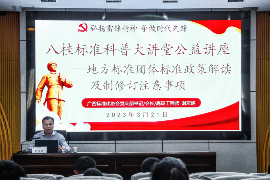 为深入贯彻落实《国家标准化发展纲要》,推进标准化创新发展,发挥标准技术基础保障和引领支撑作用,3月21日,pg娱乐邀请广西标准化协会会长谢宏昭进行“地方标准团体标准政策解读及修订注意事项”专题讲座。