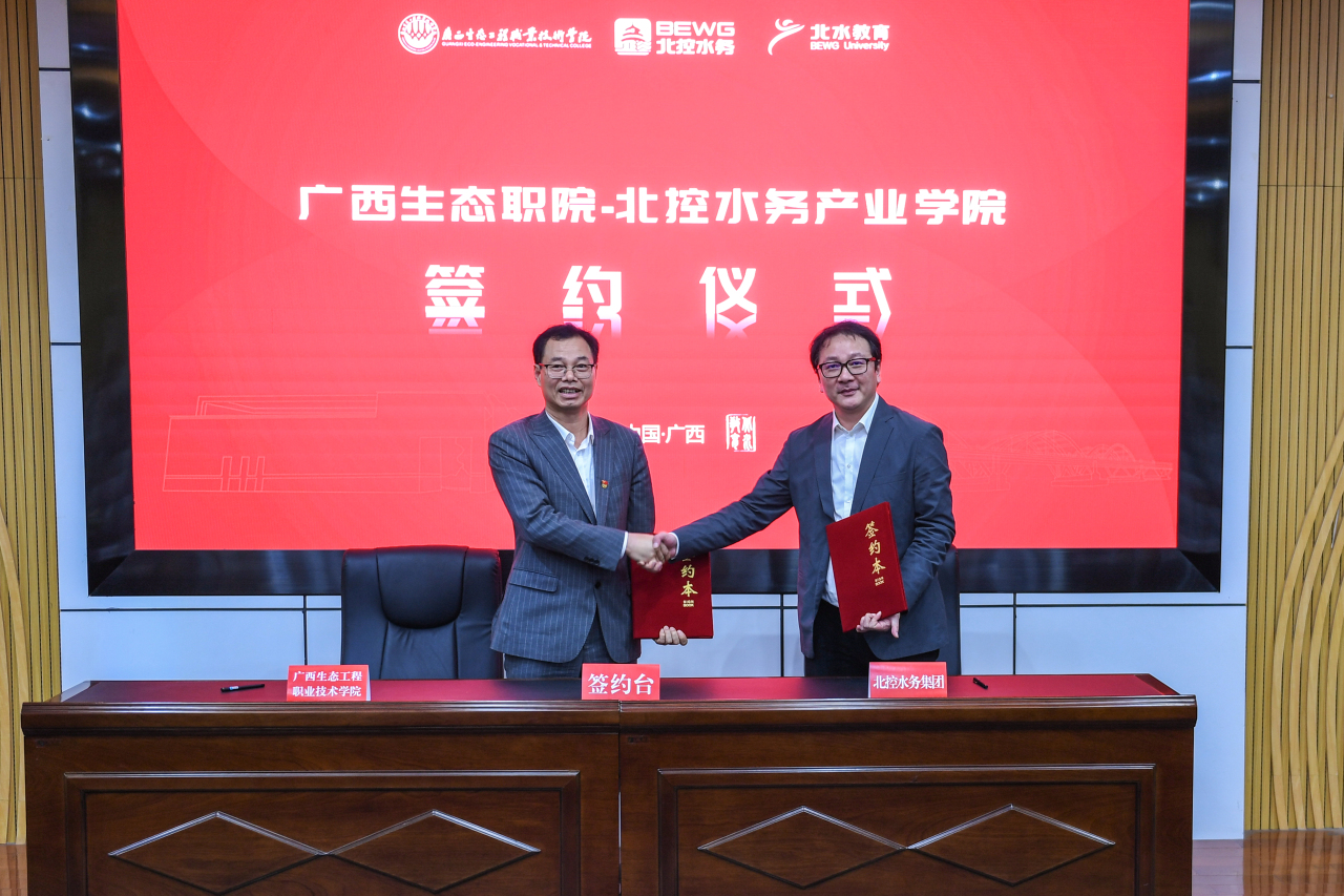 3月24日,pg娱乐电子游戏官网入口隆重举行广西生态职院-北控水务产业学院成立签约暨揭牌仪式,标志着学校产教融合、协同育人工作取得新突破。