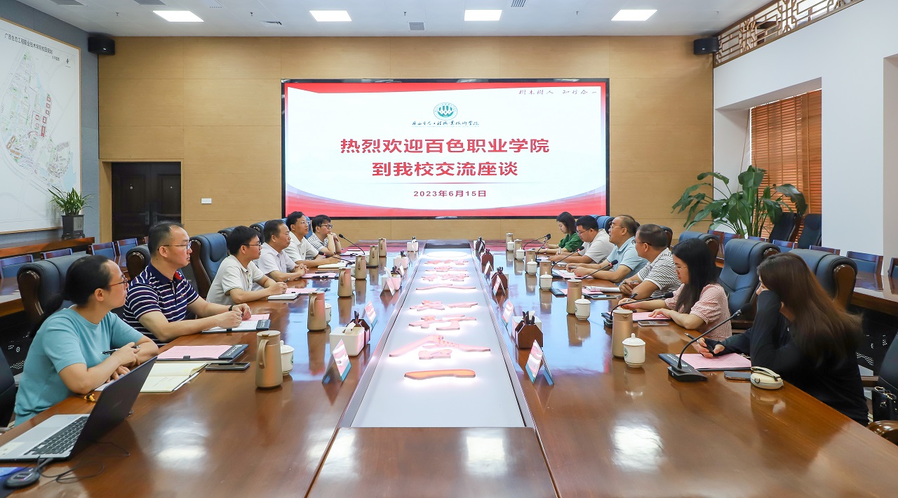 6月15日,百色职业学院副院长林灿东一行六人来pg娱乐调研交流,pg娱乐党委副书记王汉奇热情接待了来访客人,pg娱乐党委宣传部全员与客人在图书馆一棵树会议室开展座谈。