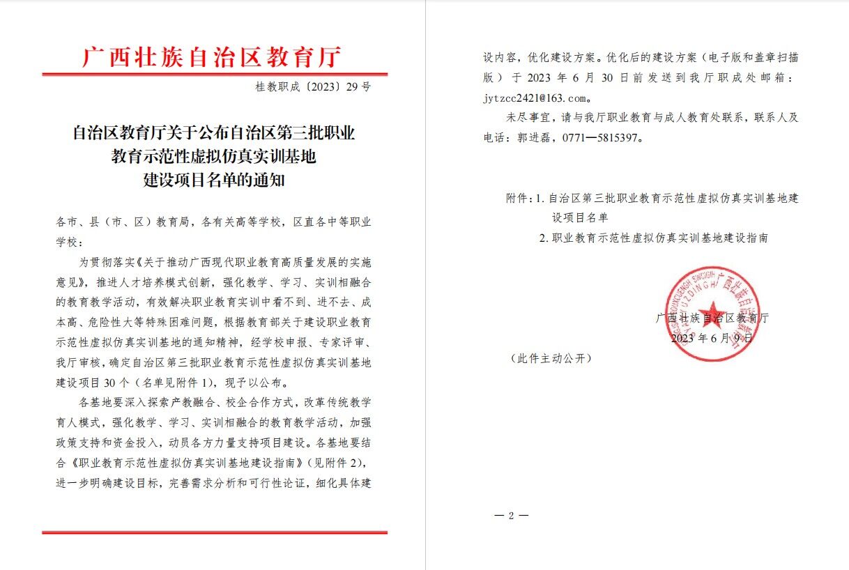近日,pg娱乐申报的林产品数字供应链虚拟仿真实训基地经自治区教育厅组织专家评审、审核,成功入选自治区第三批职业教育示范性虚拟仿真实训基地建设项目名单。
